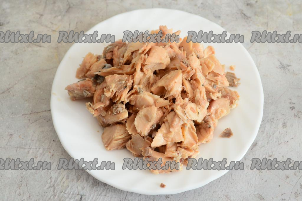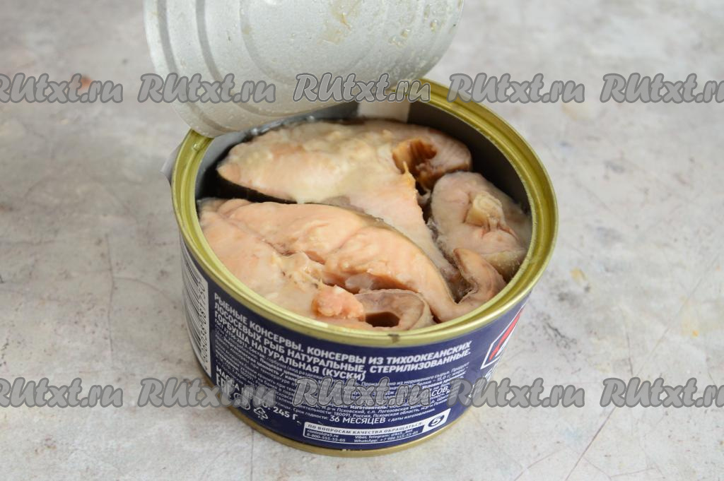 Открываем банку с консервированной горбушей.