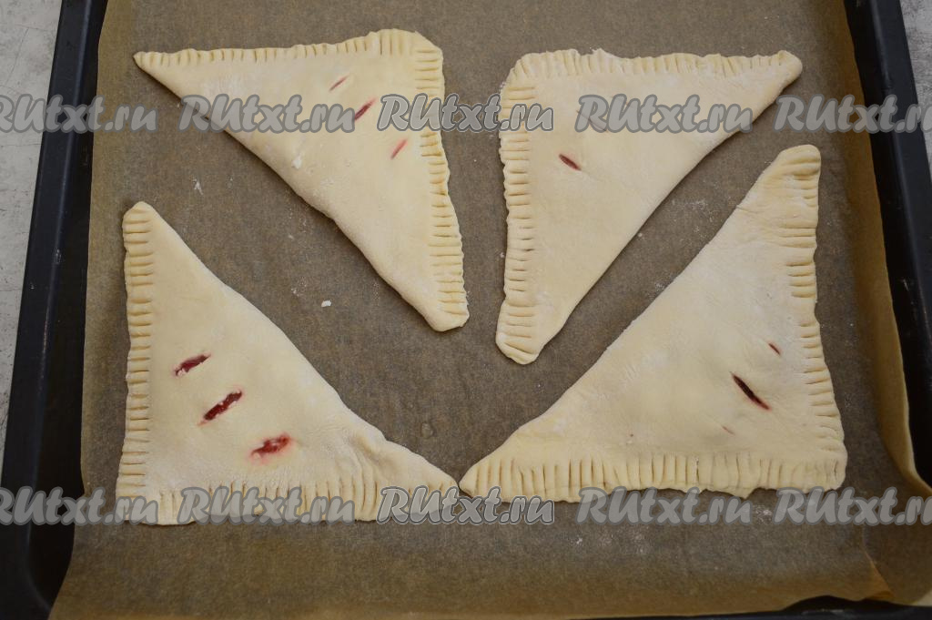 Аналогично сформировать оставшиеся пирожки с клубникой из слоёного теста.