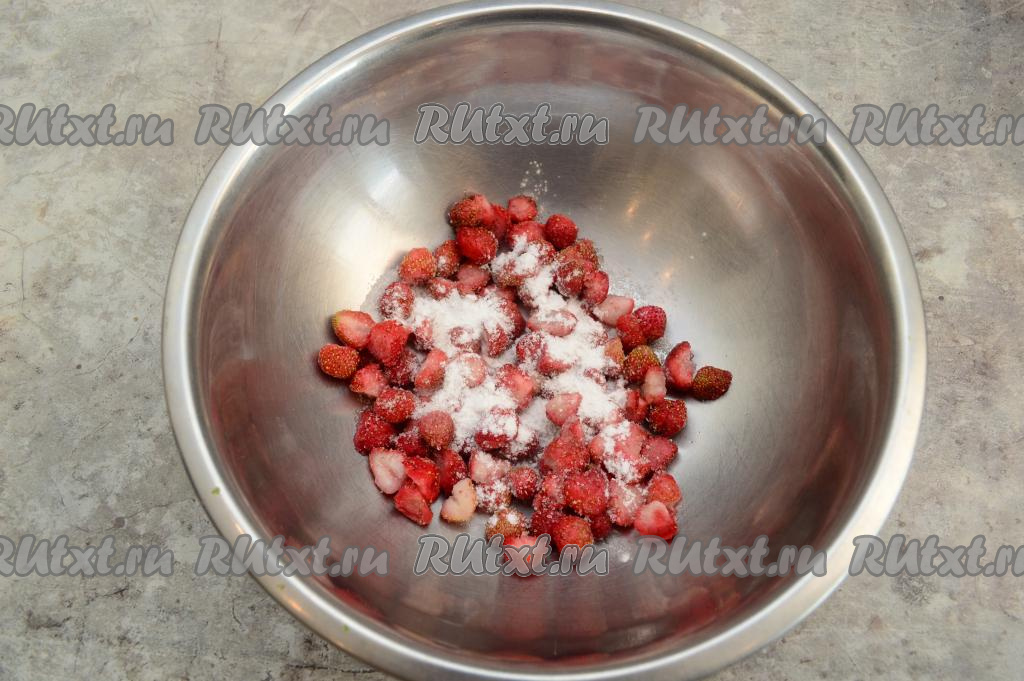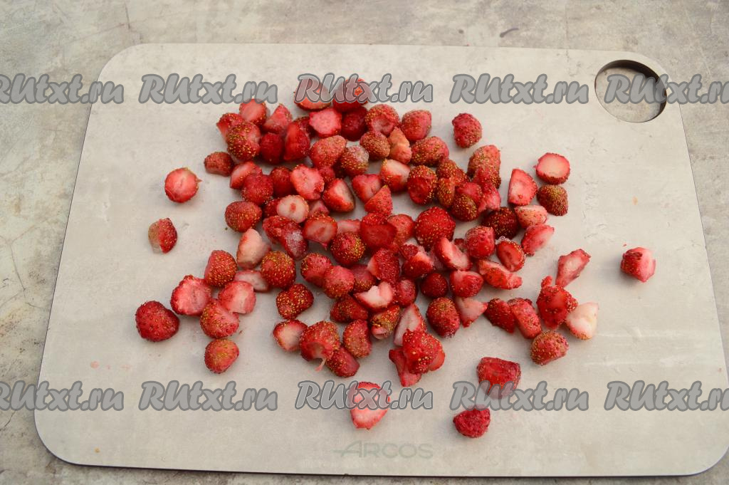 Нарезать клубнику на небольшие кусочки.