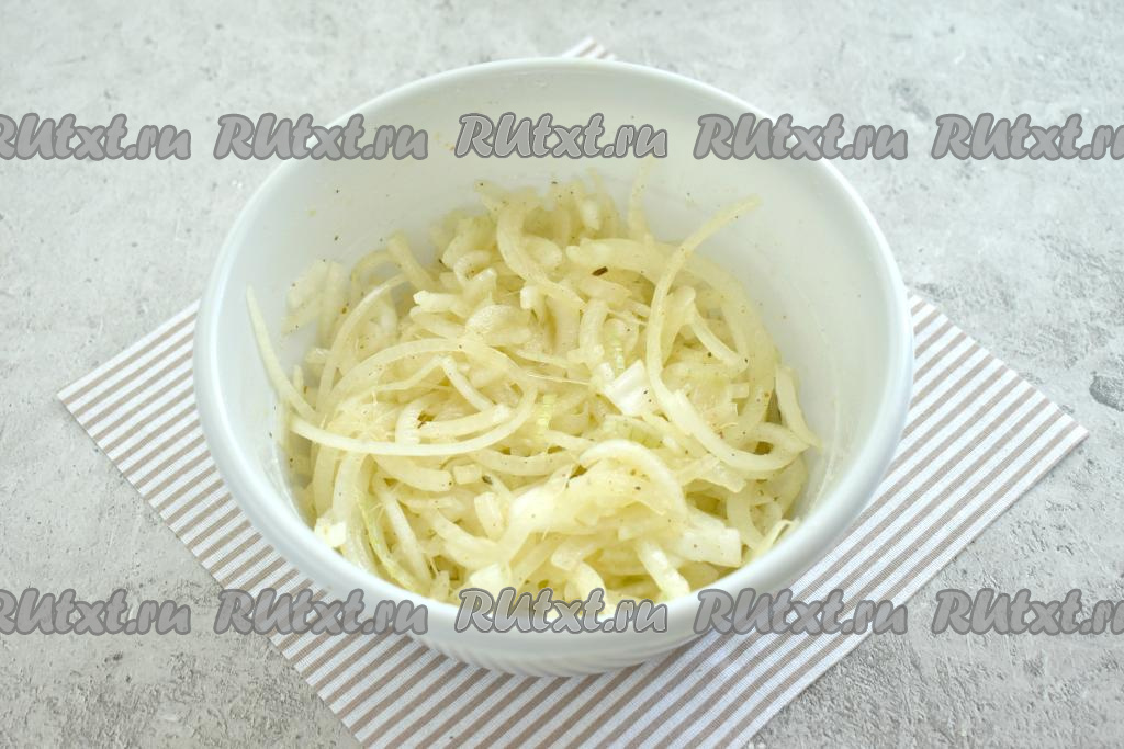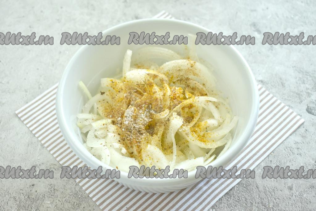 Хорошо перемешиваем лук со специями.