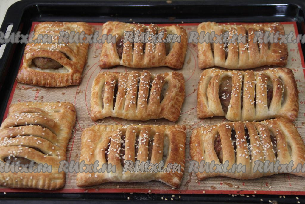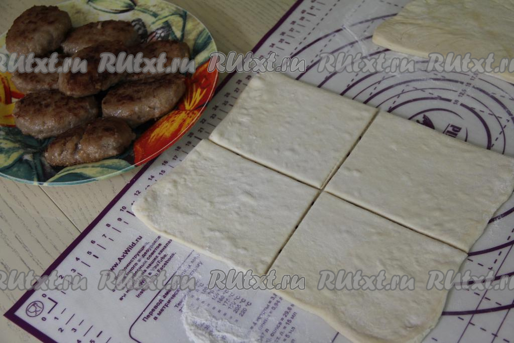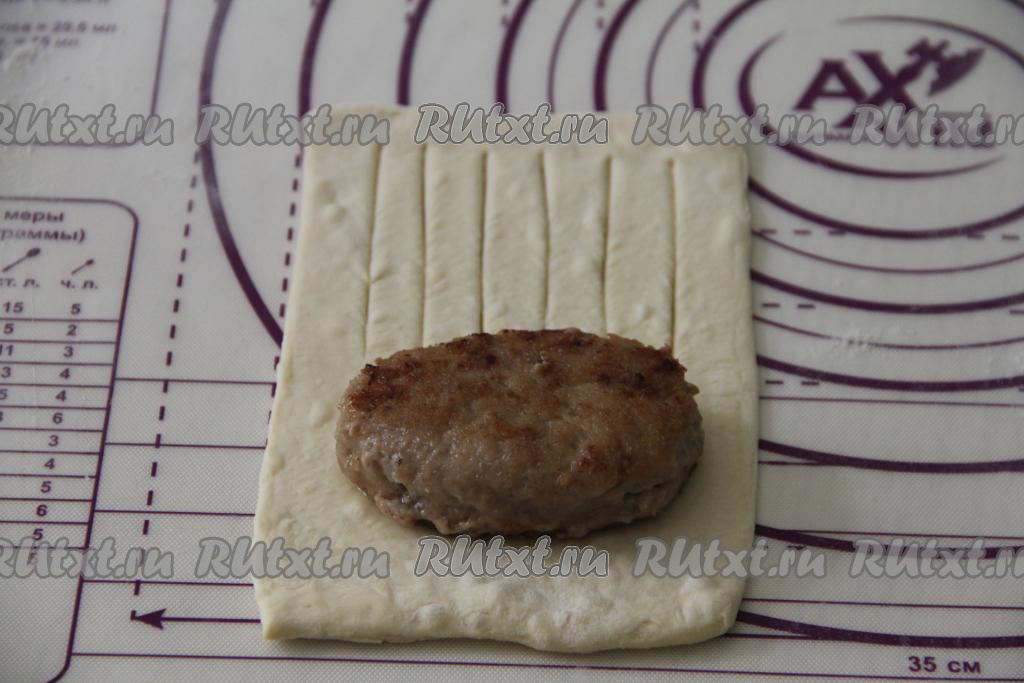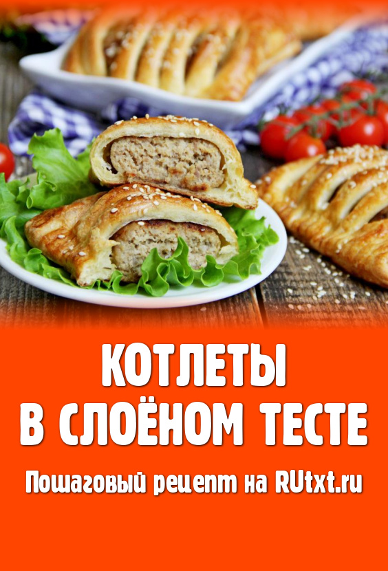 Выпекать котлеты в слоёном тесте в разогретой духовке при температуре 220 градусов минут 25 (до подрумянивания теста).