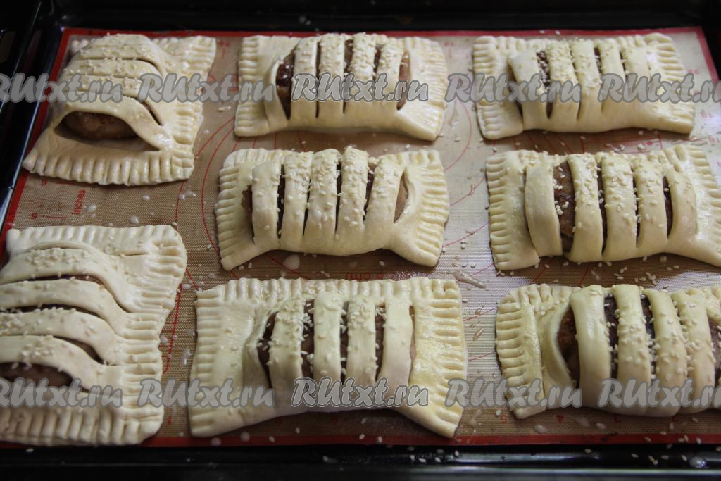 Смазать верх теста взбитым желтком, по желанию, присыпать кунжутом.
