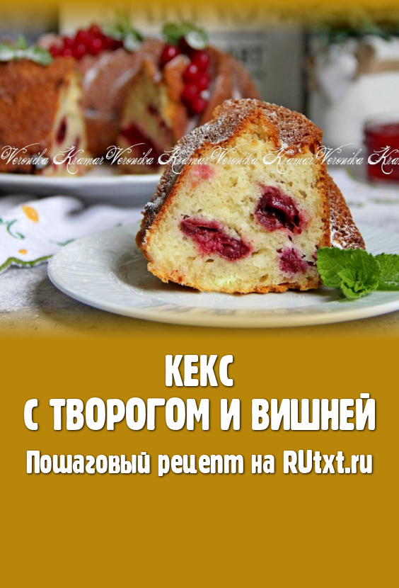 А затем нежный, в меру влажный, вкусный кекс, приготовленный с творогом и вишней, нарезать на кусочки и подать к чаю.