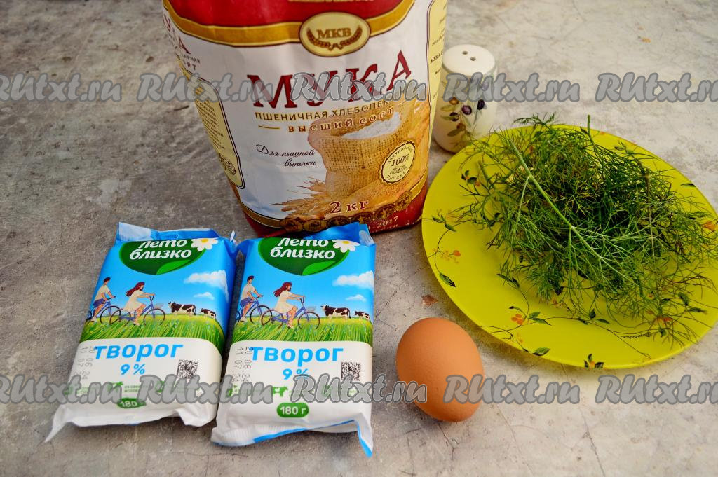Подготовить продукты. Творог лучше взять жирностью не менее 5%. Укроп промыть водой, удалить толстые стебли. Обсушить укроп, выложив на бумажное полотенце (или на бумажные салфетки).
