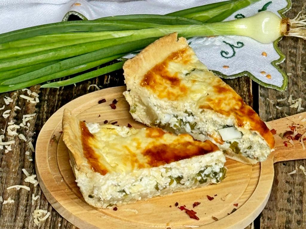 Готовый пирог достать из духовки, немного остудить и, нарезав на кусочки, подать к столу. Уверена, вкусный, нежный киш с начинкой из зелёного лука и яйца, понравится многим!