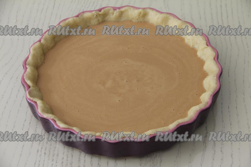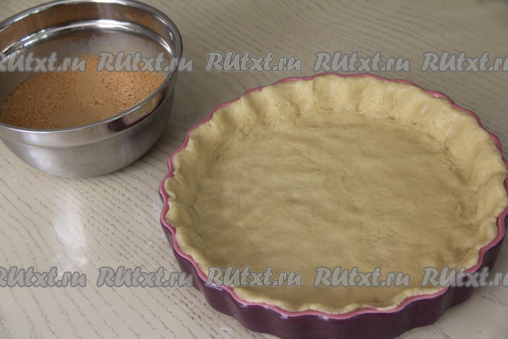 Тесто выложить в форму для выпечки диаметром 25 сантиметров. Сформировать невысокий бортик.