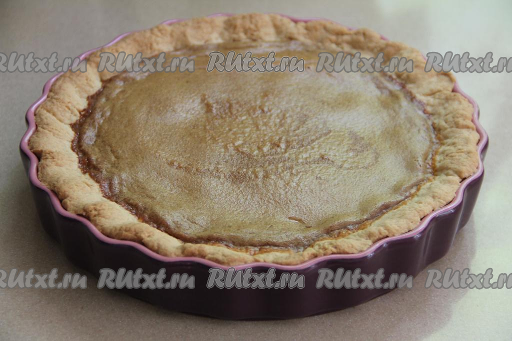 Выпекать песочный пирог с варёной сгущёнкой примерно 40 минут.