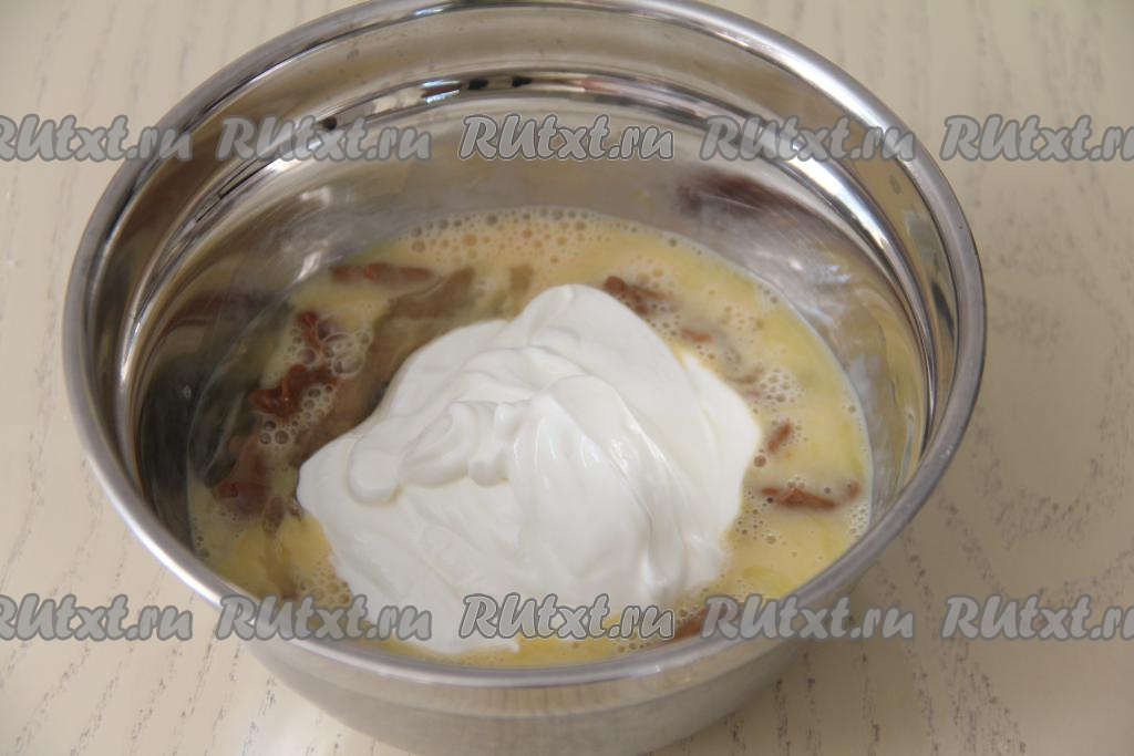 Взбить массу миксером в течение 2-3 минут (до однородности).
