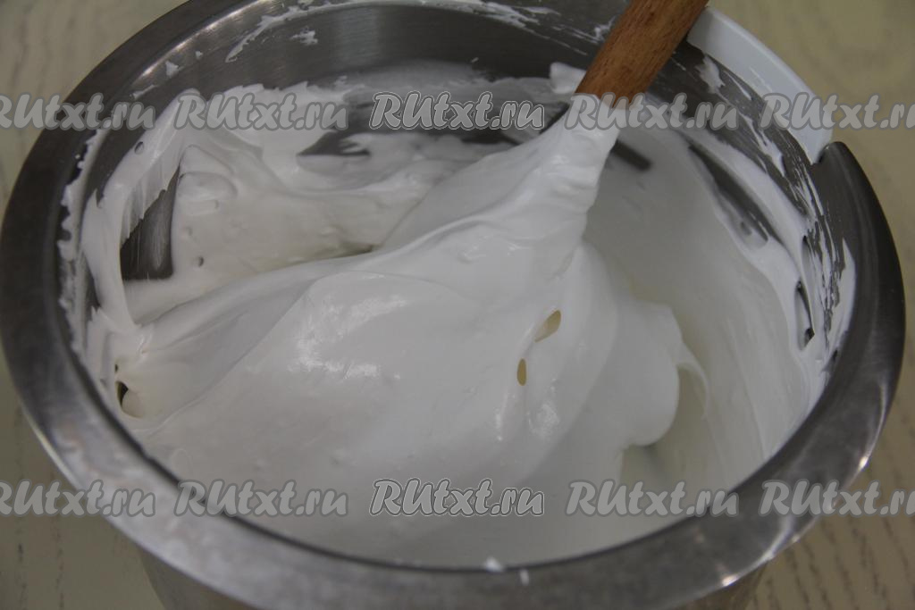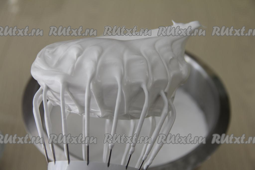 Взбивать минут 10 (до стойких пиков). Масса должна держать "клювик", как на фото.