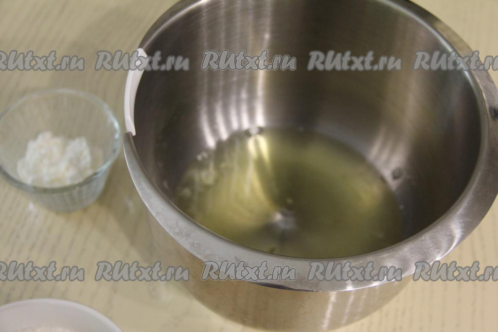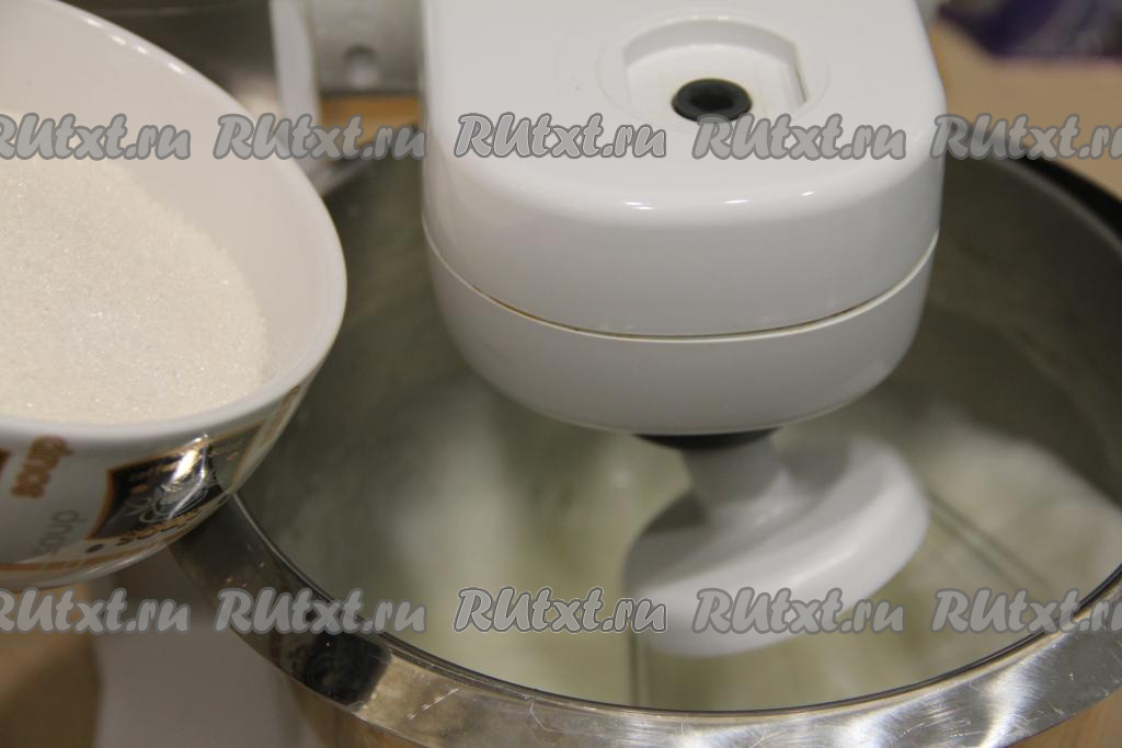 Затем, продолжая взбивать миксером, всыпать частями сахар и лимонную кислоту.