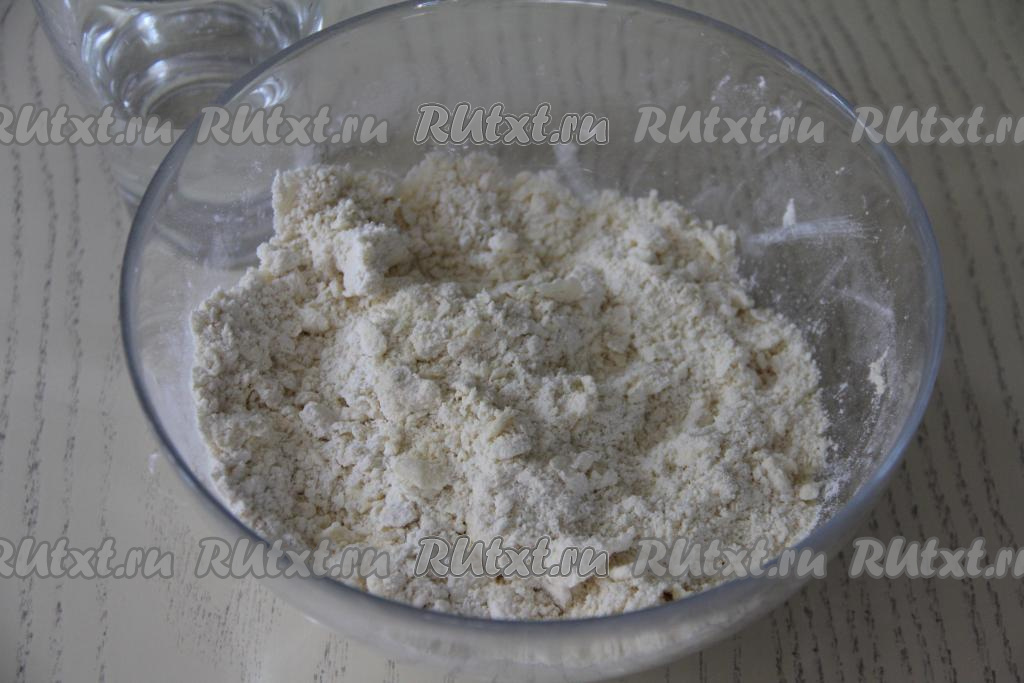 Начать понемногу вливать холодную воду, каждый раз полностью вмешивая её в песочное тесто.