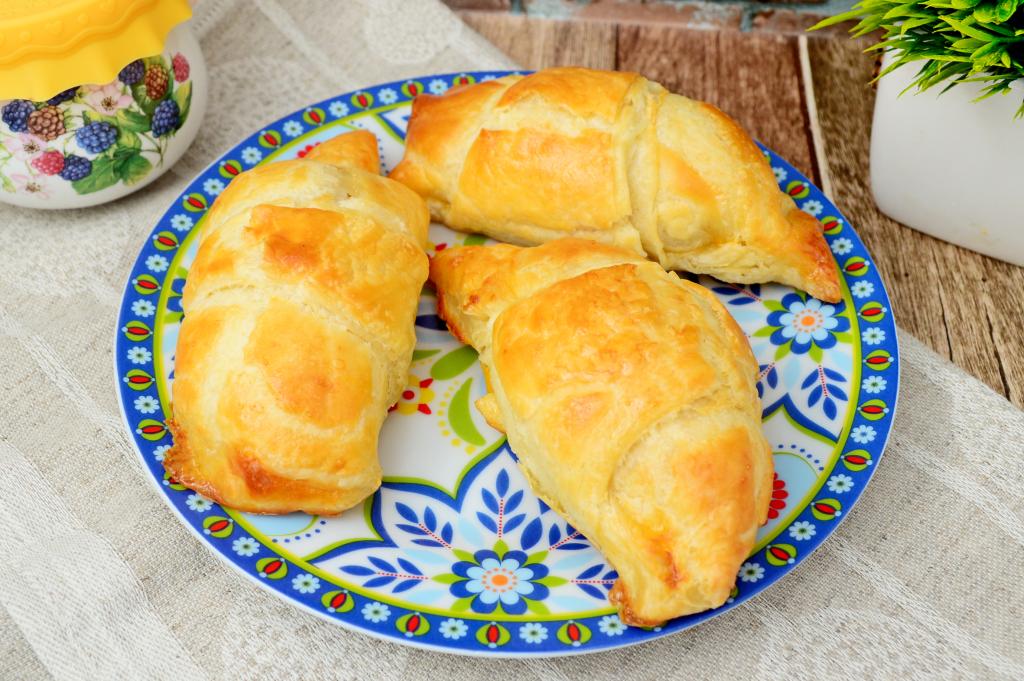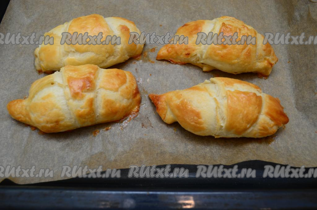 Выпекать до образования золотистой корочки на слоёном тесте (в течение 20-25 минут).
