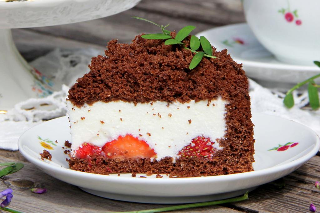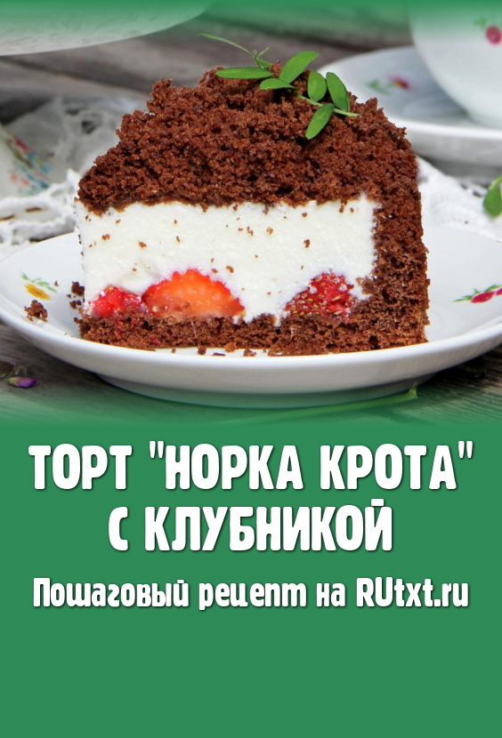 В сезон клубники можно приготовить нежный, красивый и вкусный торт под названием "Норка крота". Основу этого домашнего десерта составляет шоколадный бисквит, начинка состоит из свежей клубники и нежнейшего творожного суфле. Я приготовила небольшой тортик диаметром 17 сантиметров, если хотите торт среднего размера, тогда просто увеличьте количество ингредиентов в 2 раза. Сочетание суфле, клубники и шоколадного бисквита - очень удачное, поэтому этот торт неизменно нравится и взрослым, и детям. Такой десерт украсит любое чаепитие!