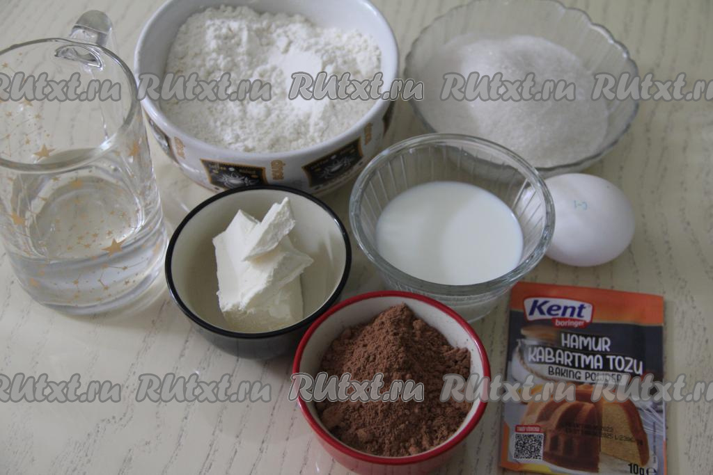 Перемешать тесто лопаткой. Влить крутой кипяток.