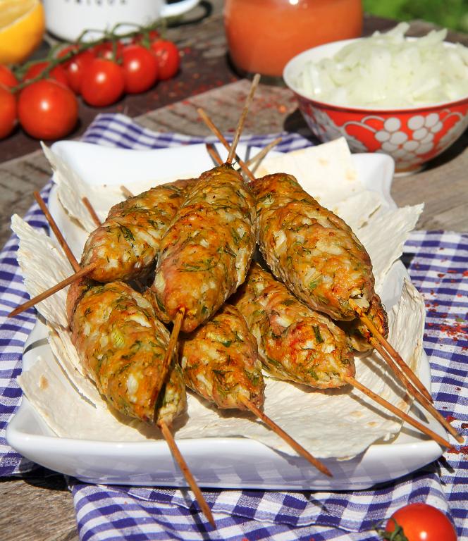 Предлагаю приготовить в духовке нежные, сочные и ароматные люля-кебабы из фарша свинины на шпажках. Такие люля-кебабы по вкусу не уступают люля, приготовленным на мангале, только вот аромата дымка не хватает. Прекрасным дополнением к ним станет ваш любимый соус и маринованный лук.