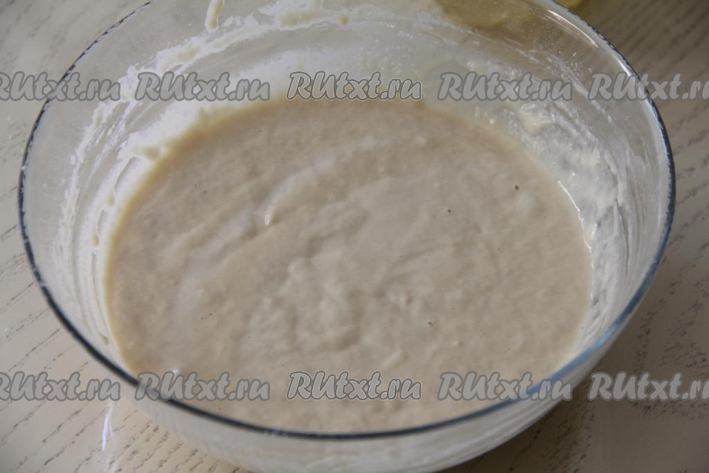 Добавляя понемногу муку, учитывайте, что тесто для оладий должно получиться однородным, в меру густым, напоминающим по консистенции сметану средней жирности.