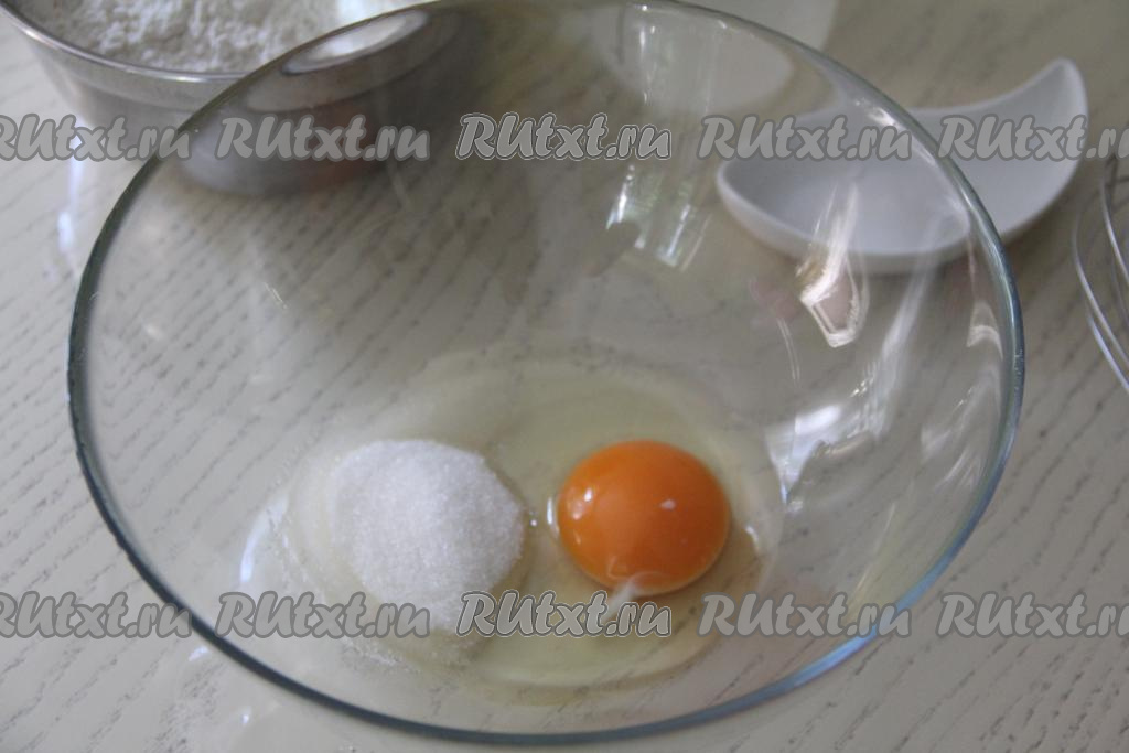 В глубокой миске соединить яйцо с сахаром и солью.