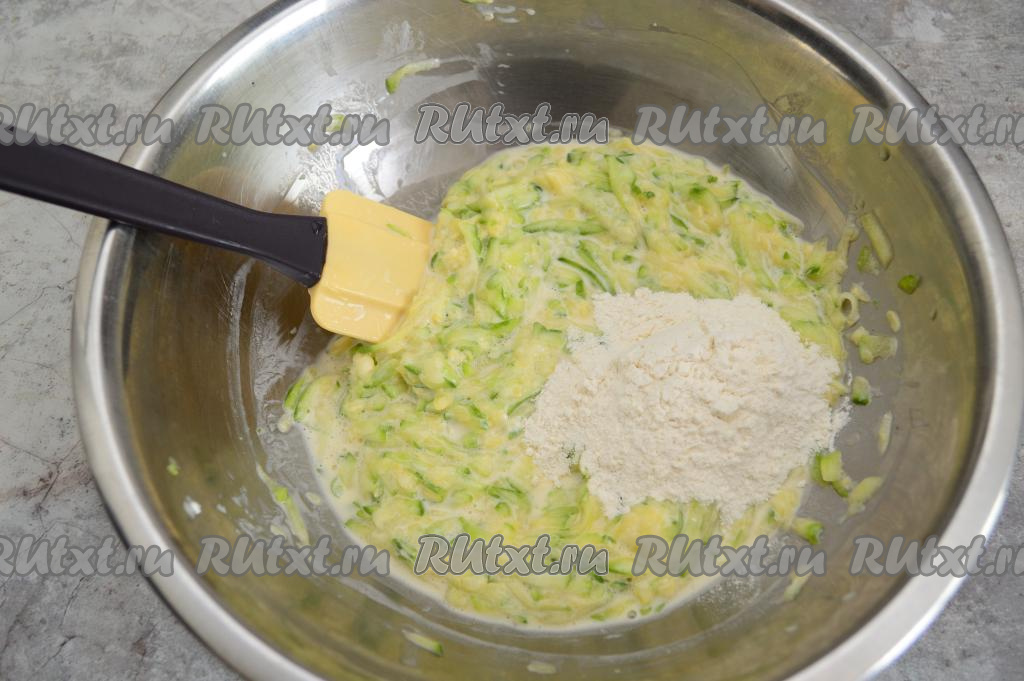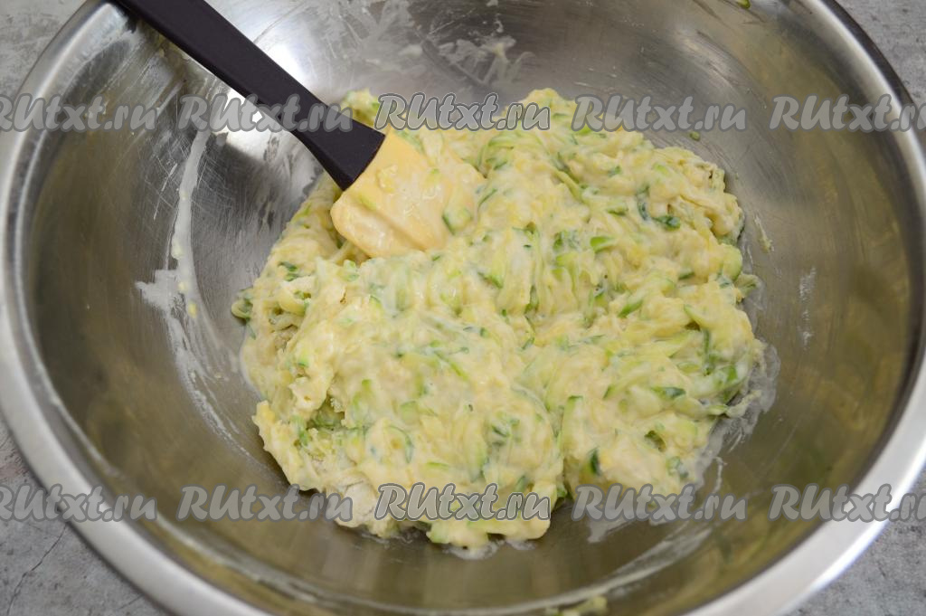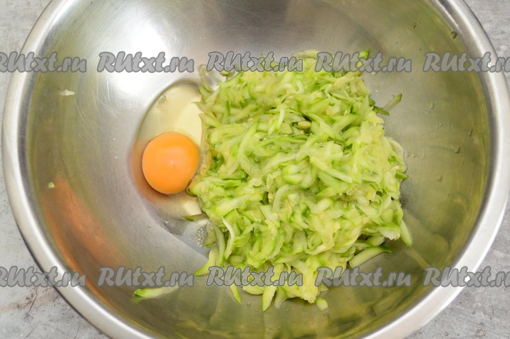 В кабачковую массу, отжатую от лишней жидкости, вбить сырое яйцо.