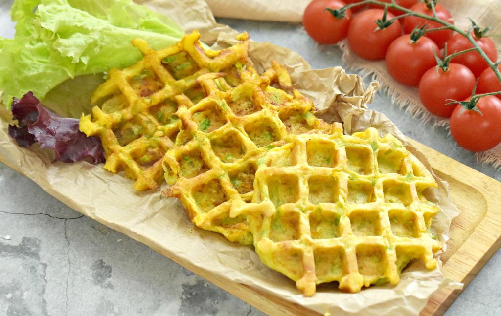 Нежные, мягкие, аппетитные кабачково-морковные вафли подаём к столу, дополнив, по желанию, сметаной.