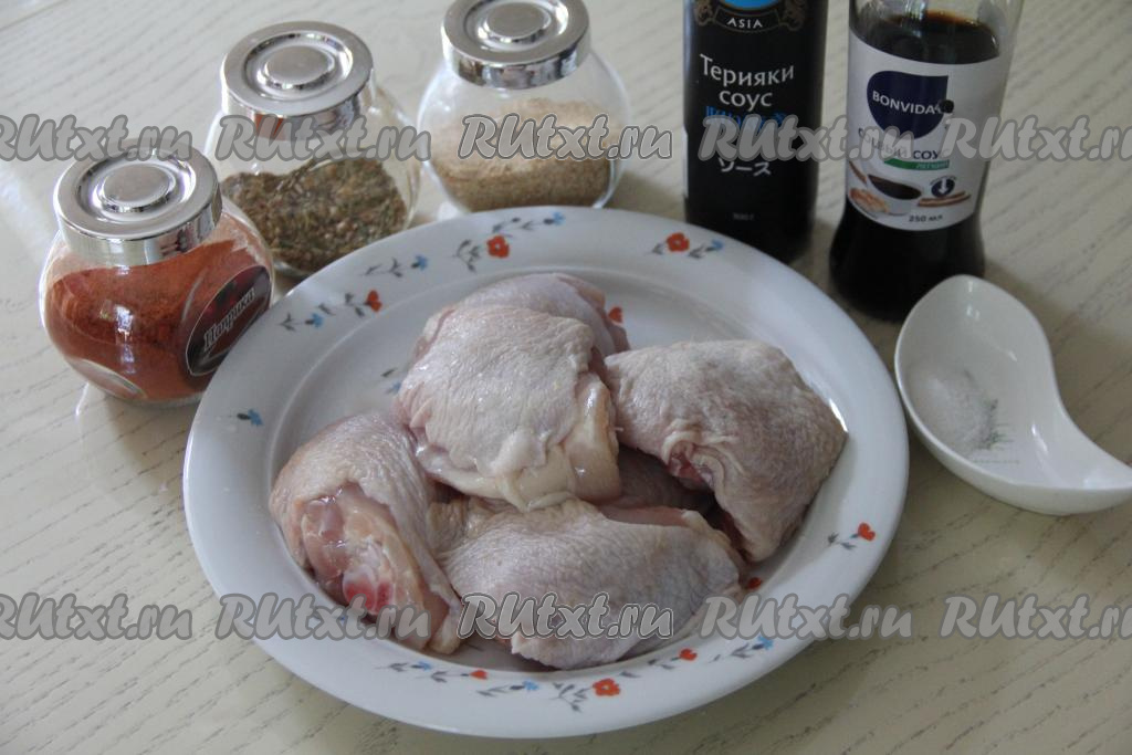 Подготовить продукты. Куриные бёдра промыть водой и обсушить.