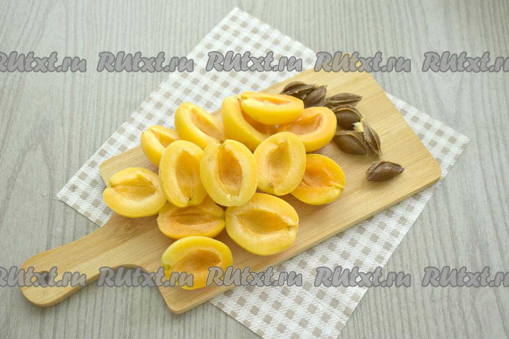 Абрикосы моем, разрезаем пополам, косточки удаляем.