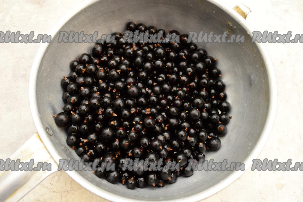 Чёрную смородину промыть под проточной водой, откинуть на дуршлаг, чтобы стекла лишняя вода.
