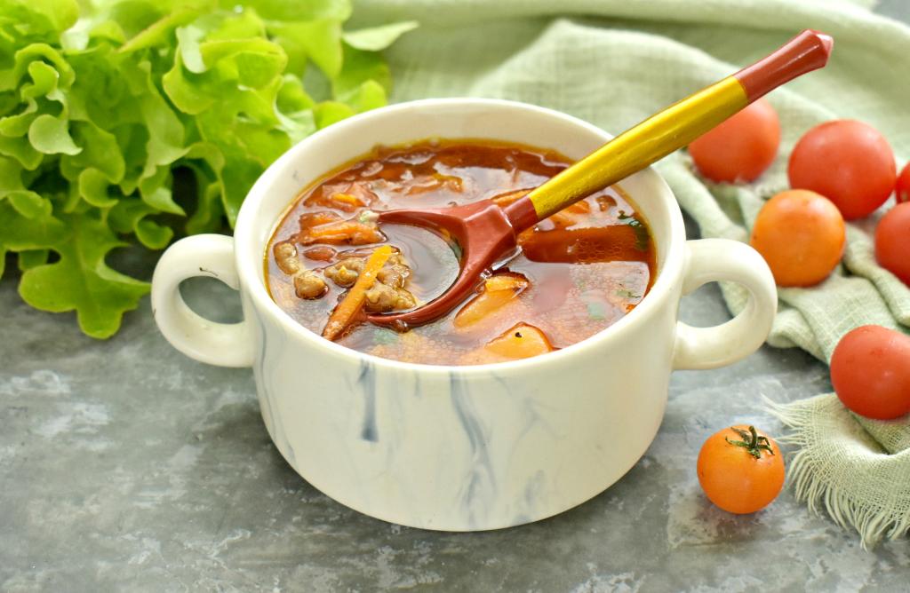 Борщ - одно из самых популярных первых блюд, поэтому и вариаций его приготовления очень много. В этот раз предлагаю сварить вкусный, аппетитный, насыщенный борщ с фаршем. Готовится он достаточно быстро, ведь предварительно не нужно варить мясной бульон. Уверена, такой борщ придётся по вкусу и вам, и вашим близким!