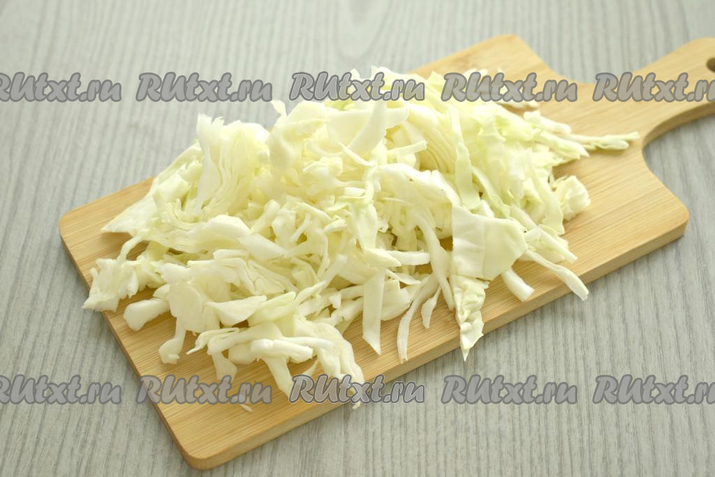 Сразу за картофелем добавляем капусту, нарезанную на достаточно тонкие полоски. Даём закипеть, после этого варим на небольшом огне 20 минут.