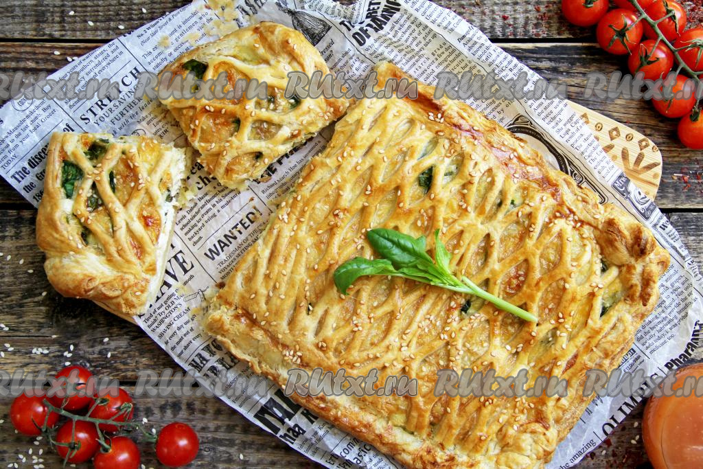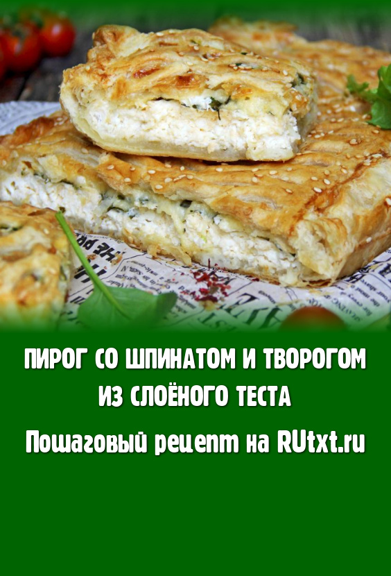 В моей морозилке всегда есть слоёное тесто, ведь из него достаточно быстро можно приготовить разнообразную выпечку. Сегодня предлагаю приготовить в духовке аппетитный, насыщенный пирог из слоёного теста с начинкой из творога и шпината. Этот сытный и вкусный пирог можно подать к чаю или для перекуса.
