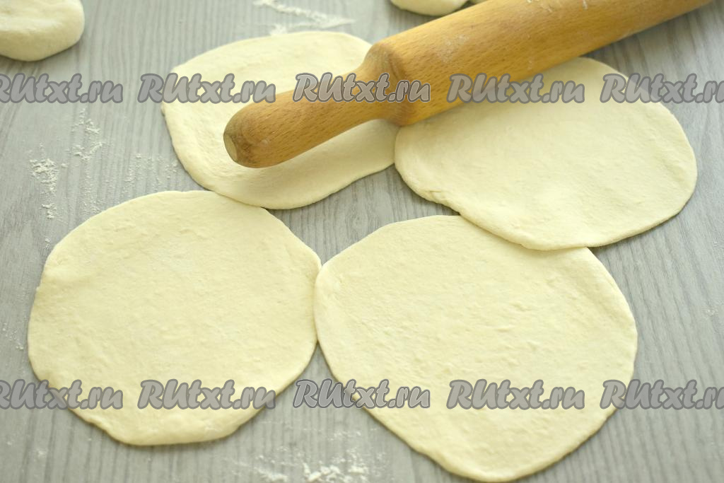 Заготовки из слоёного теста раскатываем в круглые, не очень тонкие (толщиной 2-3 миллиметра) лепёшки.