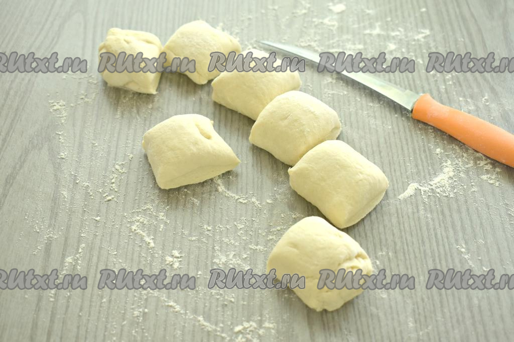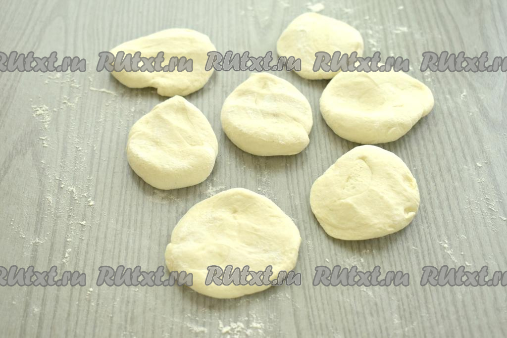 Каждый кусочек теста ставим на срез и сверху прижимаем ладонью.