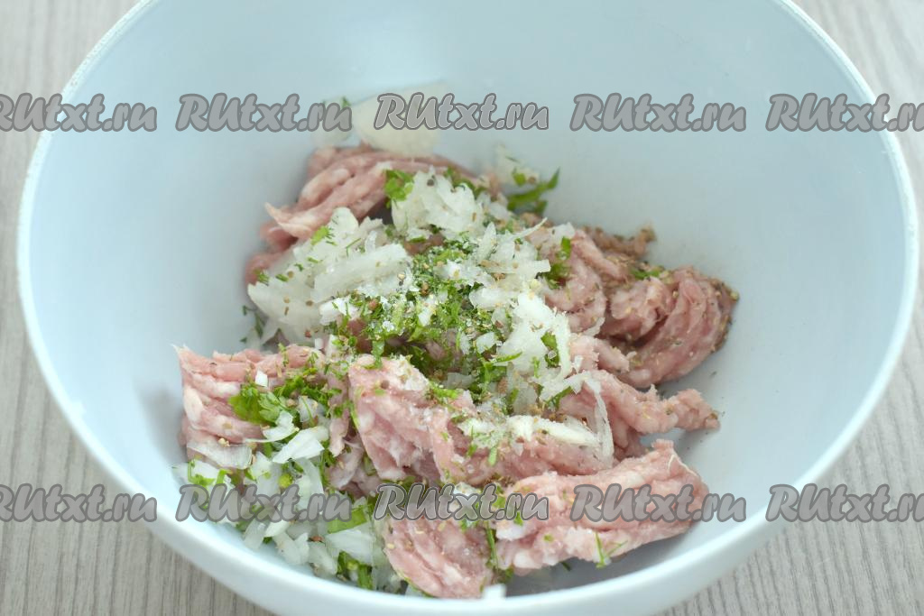 Хорошо перемешиваем фарш и начинка для наших беляшей готова.