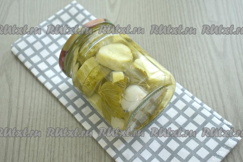 Затем аккуратно банку достаём из кастрюли, плотно закручиваем крышкой и проверяем на герметичность. Банку с кружочками огурцов ставим на крышку, укутываем в одеяло (или тёплое полотенце) и оставляем до полного остывания (обычно требуются сутки). Затем убираем банку с маринованными огурчиками на хранение до зимы в прохладное место (я храню в кладовке).