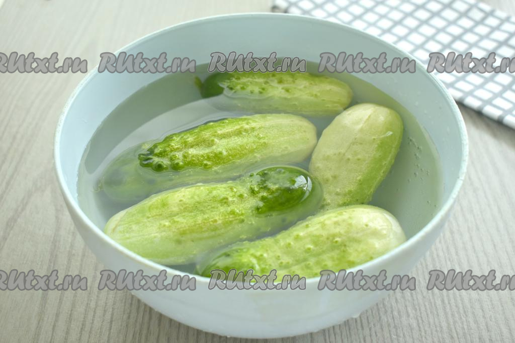 Огурцы полностью заливаем холодной водой и оставляем на 2-3 часа.