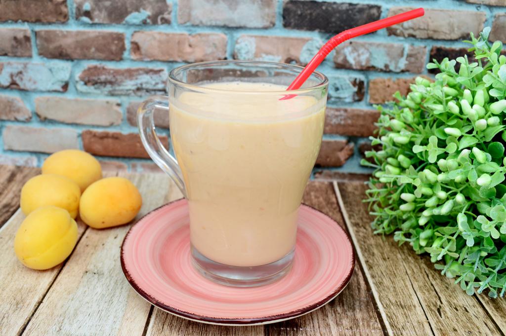 Взбить молочный коктейль с абрикосами на максимальной скорости погружного блендера, в течение 1 минуты, то поднимая, то опуская блендер. Попробовать на вкус, если сахара в молочно-абрикосовом коктейле вам не хватает, тогда добавьте его по вкусу и ещё раз взбейте коктейль блендером.