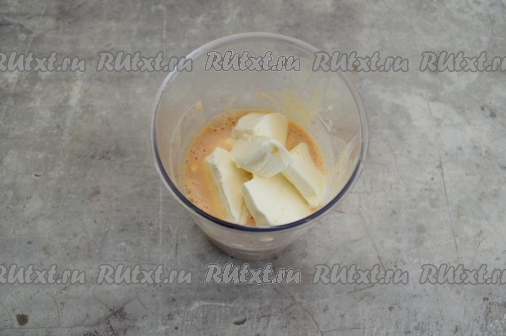 Мороженое нарезать на кусочки и добавить в чашу блендера.