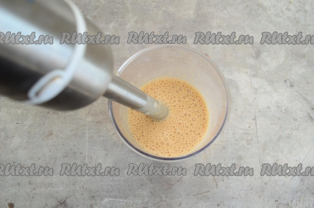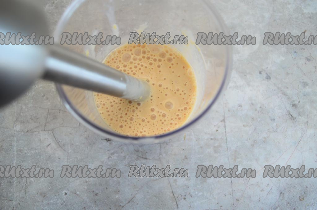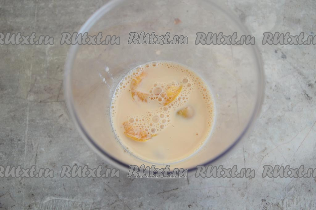 Пробить абрикосы с молоком погружным блендером до однородности (в течение 1-2 минут).