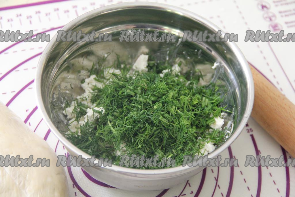 Перемешать творог с зеленью и начинка для лепёшек "Гезлеме" готова.