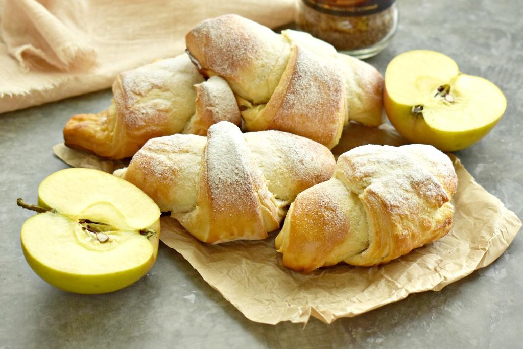 Круассаны со сладкой, ароматной, сочной начинкой из яблок и приятно похрустывающим слоёным тестом несомненно понравятся всей семье!