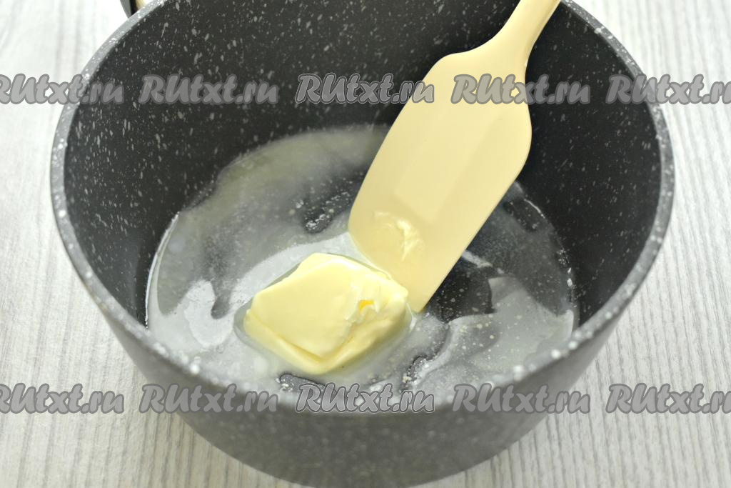 В небольшую кастрюльку с толстым дном (или сковороду) выкладываем сливочное масло и на среднем огне растапливаем его.