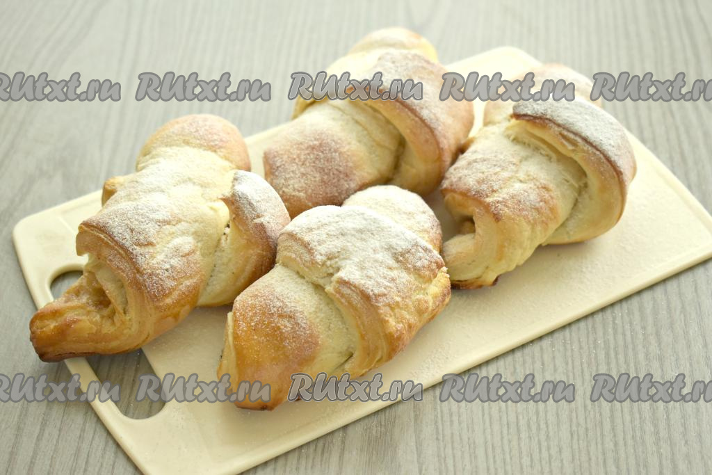Отправляем противень в духовку, разогретую до 180 градусов. Выпекаем круассаны с яблоками минут 25 (до золотистости слоёного теста). Готовую выпечку достаём из духовки, даём немного остыть, по желанию, посыпаем сахарной пудрой и можно подавать к столу.