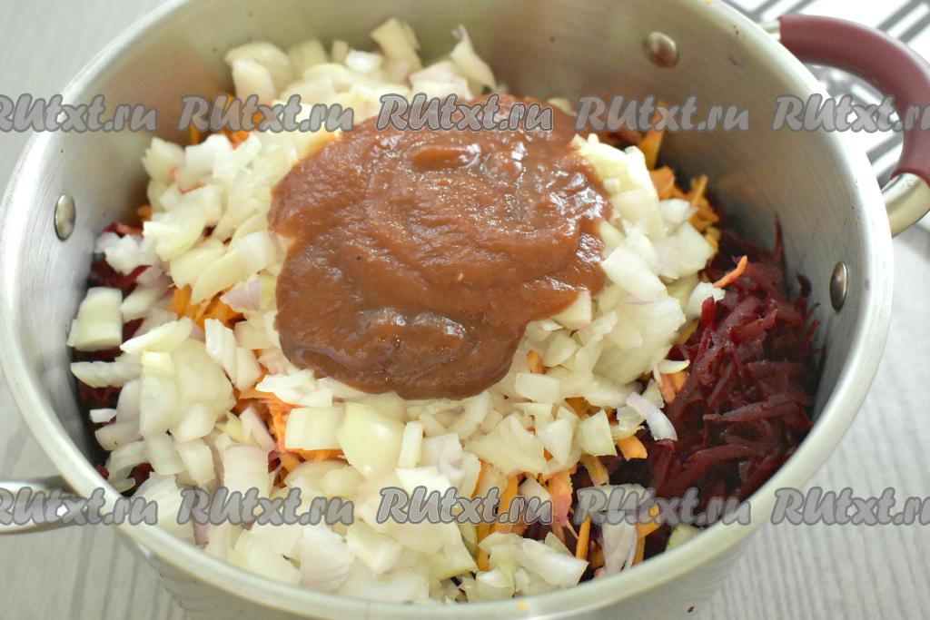 Зимой такая свекольная заправка позволит достаточно быстро сварить насыщенный, вкусный борщ.
