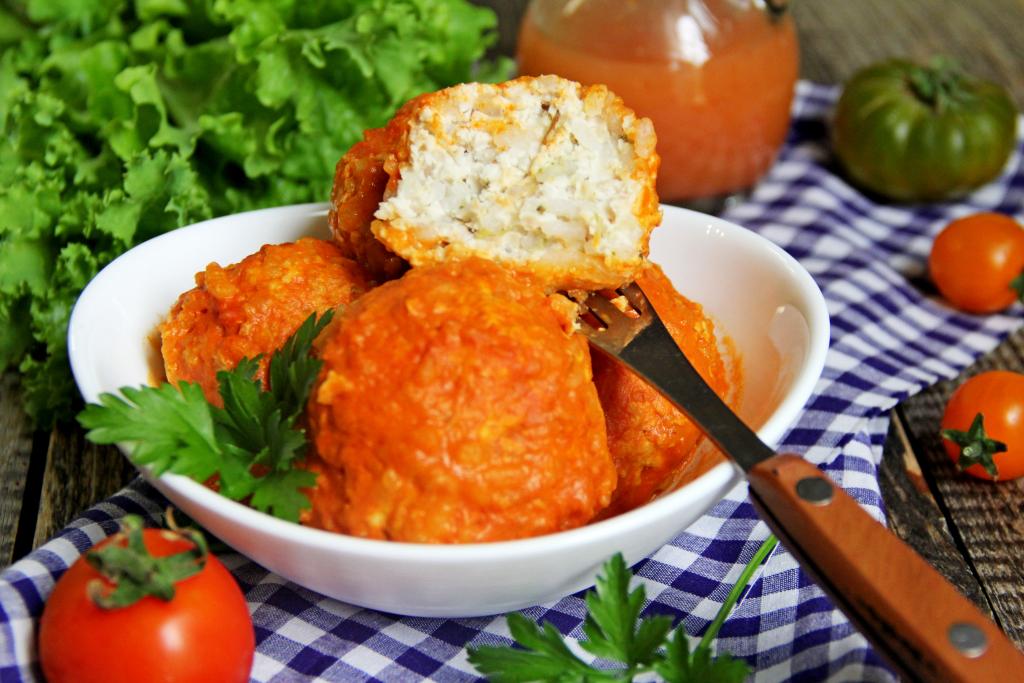 Тефтели - одно из самых популярных мясных блюд, готовят их по-разному. Хочу поделиться рецептом приготовления тефтелей, сформированных из куриного фарша с добавлением кабачка и риса, а затем тушёных в томатно-сметанном соусе. Куриные тефтели получаются аппетитными, вкусными, сытными. Кабачок делает их более сочными и нежными. В качестве дополнения к ним можно подать практически любой гарнир (например, картофель, булгур) или нарезанные свежие овощи.