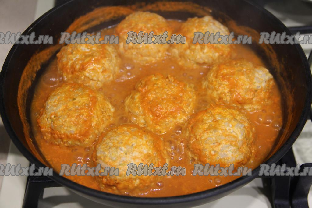 Томить тефтели 25 минут. За это время 3-4 раза тефтели нужно будет перевернуть, чтобы они равномерно протушились в соусе со всех сторон.