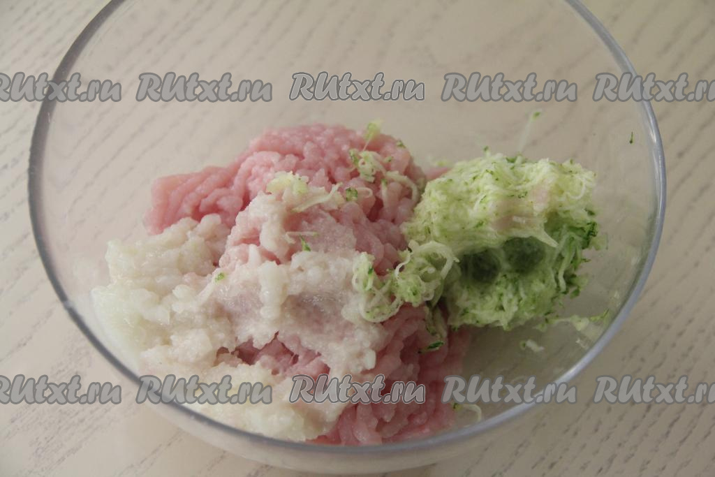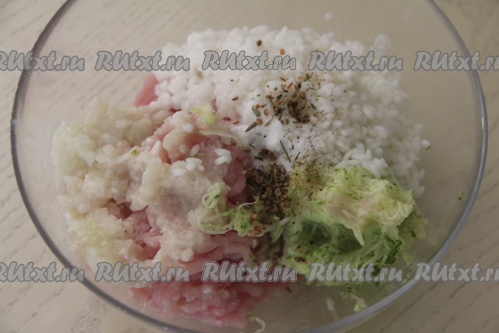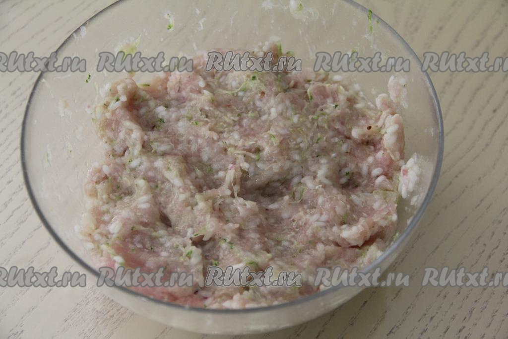 Хорошо вымесить фарш с кабачком и рисом.