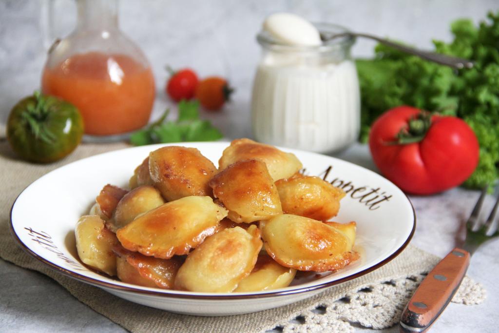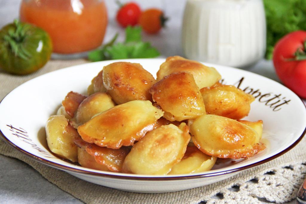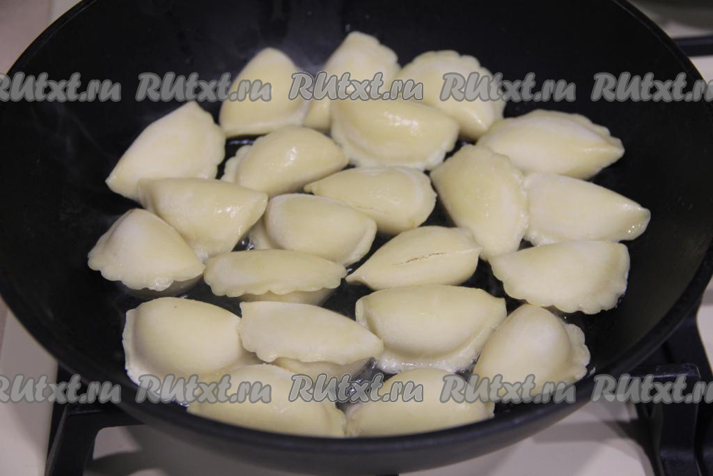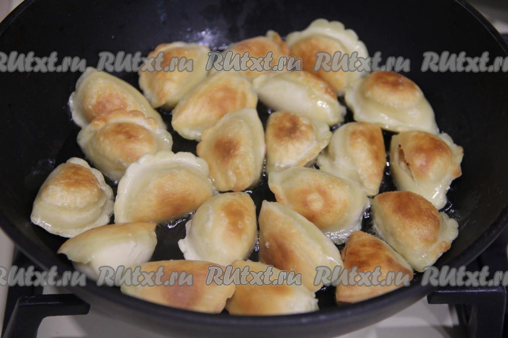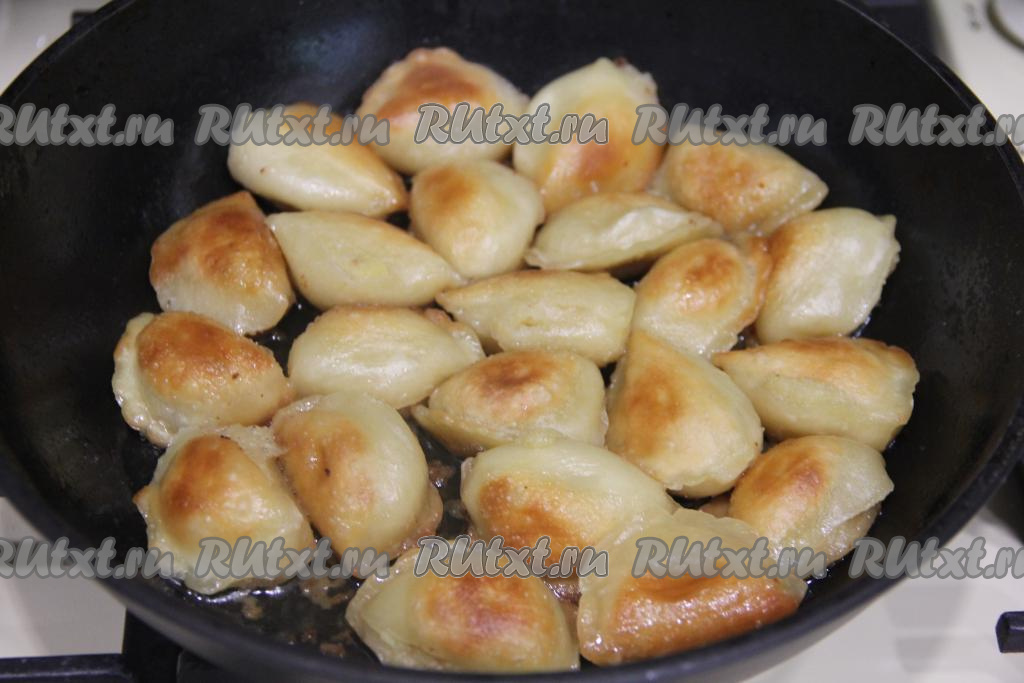 На среднем огне обжарить вареники с картошкой с двух сторон до золотистого цвета.
