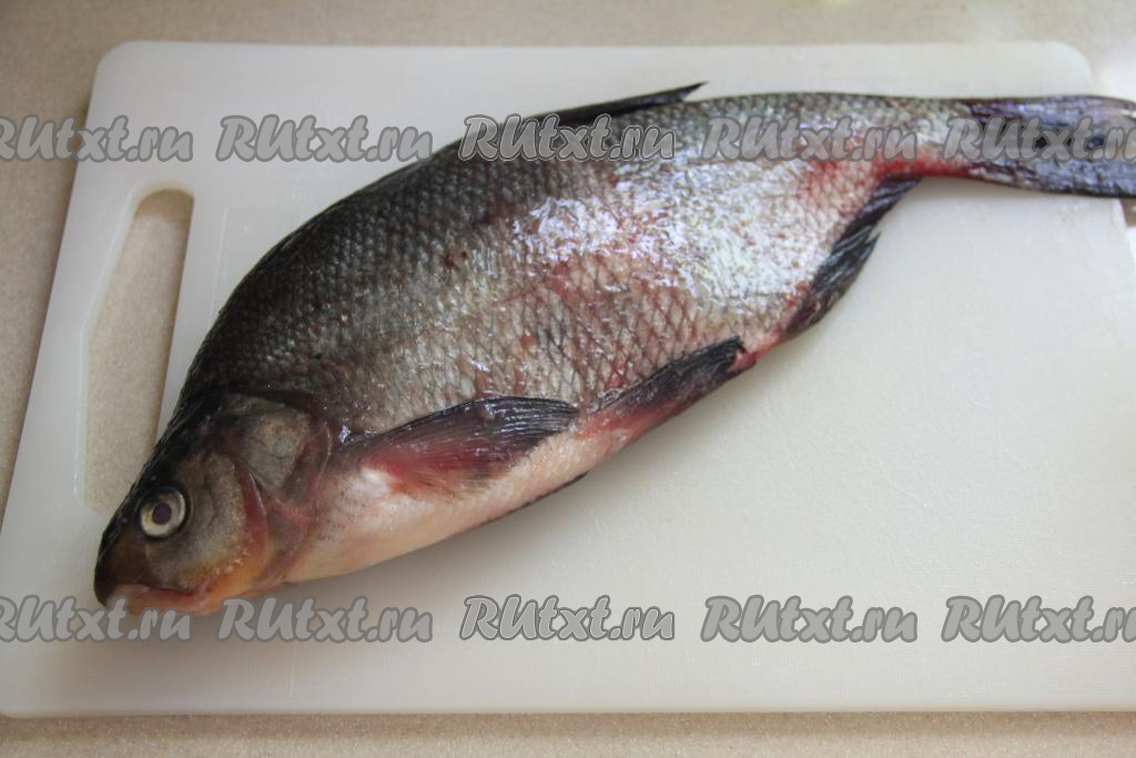 Почистить рыбу от чешуи. Удалить внутренности, не забывая убрать чёрную плёночку из брюшка. Тщательно промыть рыбку внутри и снаружи. Натереть леща солью снаружи и внутри.