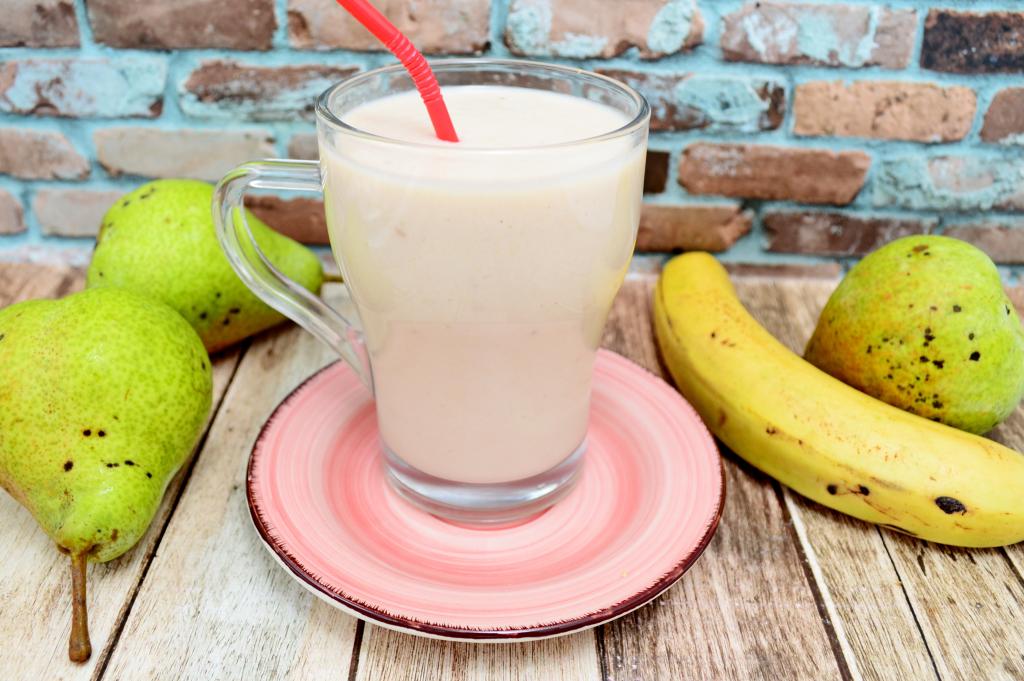 Нежный, воздушный смузи, приготовленный из груш, банана и молока, разлить по стаканам и подать к столу. Этот напиток с приятным бархатистым вкусом нужно делать на один раз. Не стоит готовить его впрок. Тем более, что делается он за считанные минуты.