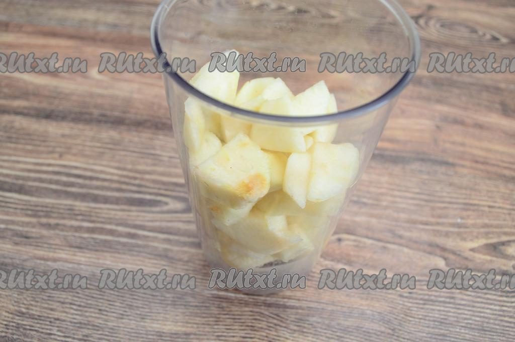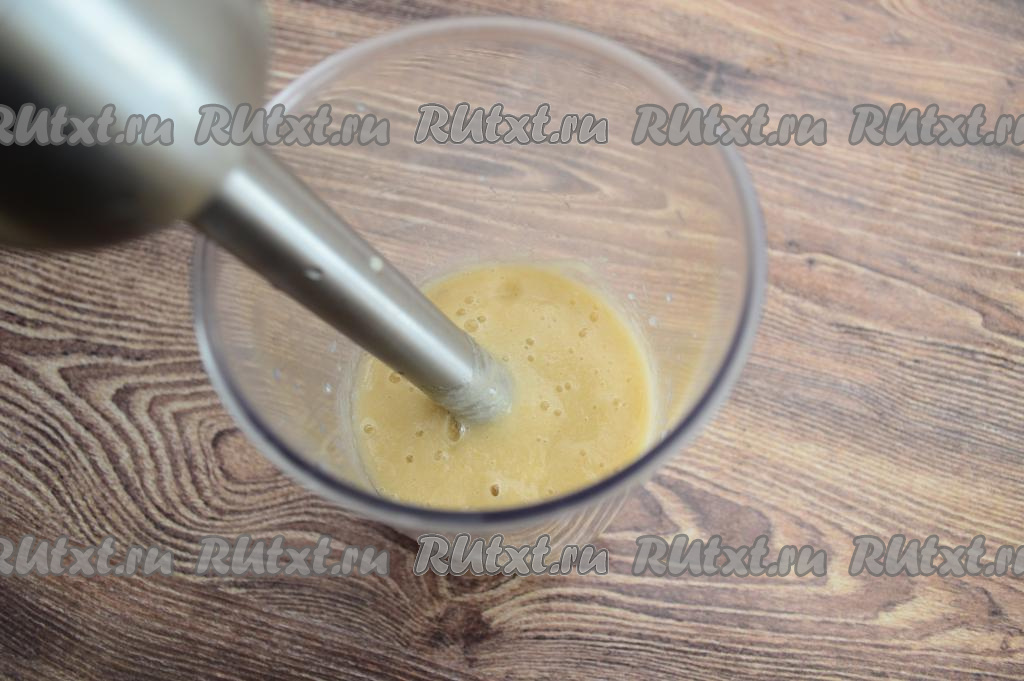 Погружным блендером пюрировать груши и банан до получения однородного пюре (взбивать примерно 1 минуту).