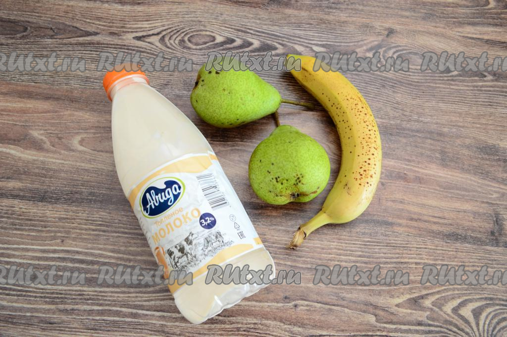 Подготовить продукты. Груши желательно брать спелые, мягкие. Банан лучше использовать спелый или даже чуть переспелый.